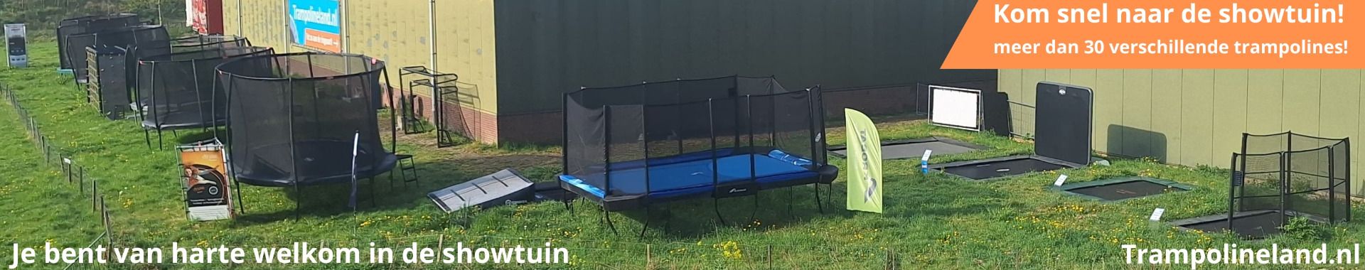 Wij raden dan ook aan om even bij ons langs te komen in de showtuin, een trampoline is een leuke maar ook vaak grote investering dus het is fijn om de beste keuze voor jullie situatie te maken. Wij helpen hier graag bij en staan echt garant voor een eerlijk advies en verkopen alleen merken die voldoen aan kwaliteitseisen dus of je nou voor een basis model gaat of een top klasse, bij ons zit je altijd goed!